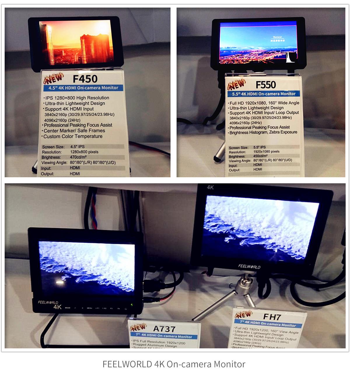 FEELWORLD new model no.: F450/ F550/ FH7/ A737 4K on-camera monitor with full HD 1920x1080, 1920x1200 precise color, IPS wider view angle to fuel your creative flow, Portable Light compatible for Steadycam, DSLR Rig, Camcorder Kit, Handheld Stabilizer, Video Camera Crane.