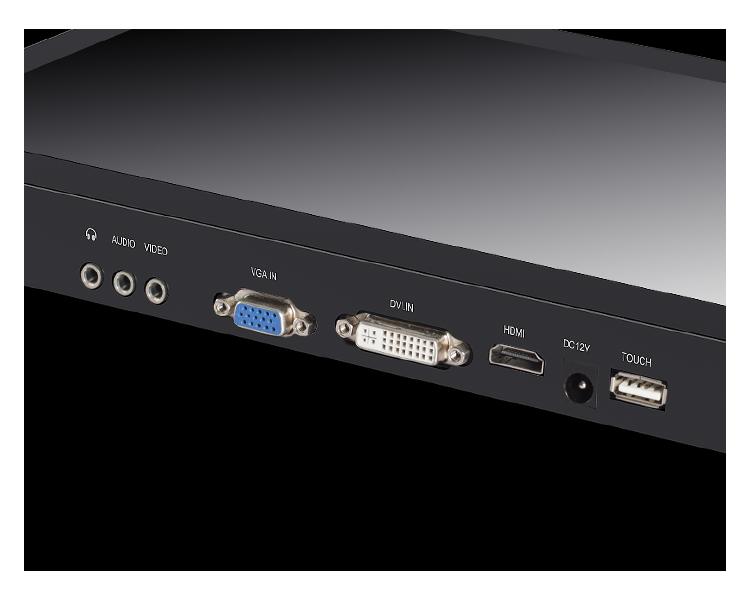 | HDMI, DVI, VGA, Video, Audio in, Audio out, USB for touch |