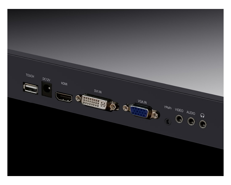 | HDMI, DVI, VGA, YPbPr, Video, Audio in, Audio out, USB for touch |