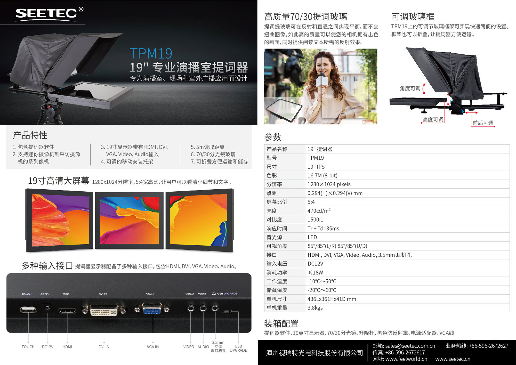 SEETEC TMP19 19寸演播室提詞器大屏幕攝像機(jī)單反電視臺(tái)播音員節(jié)目訪談讀稿提字器