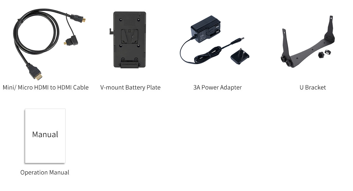 There are 3 mounting points located on the U-shaped bracket. The standard sized mounting points make it easy to mount and are compatible with third-party rigging equipment. Using the 1/4 inch holes, you can hang it from rigs or mounted it on the camera support, and use it as a monitor for the entire crew. And you can also set it up on a table to monitor.