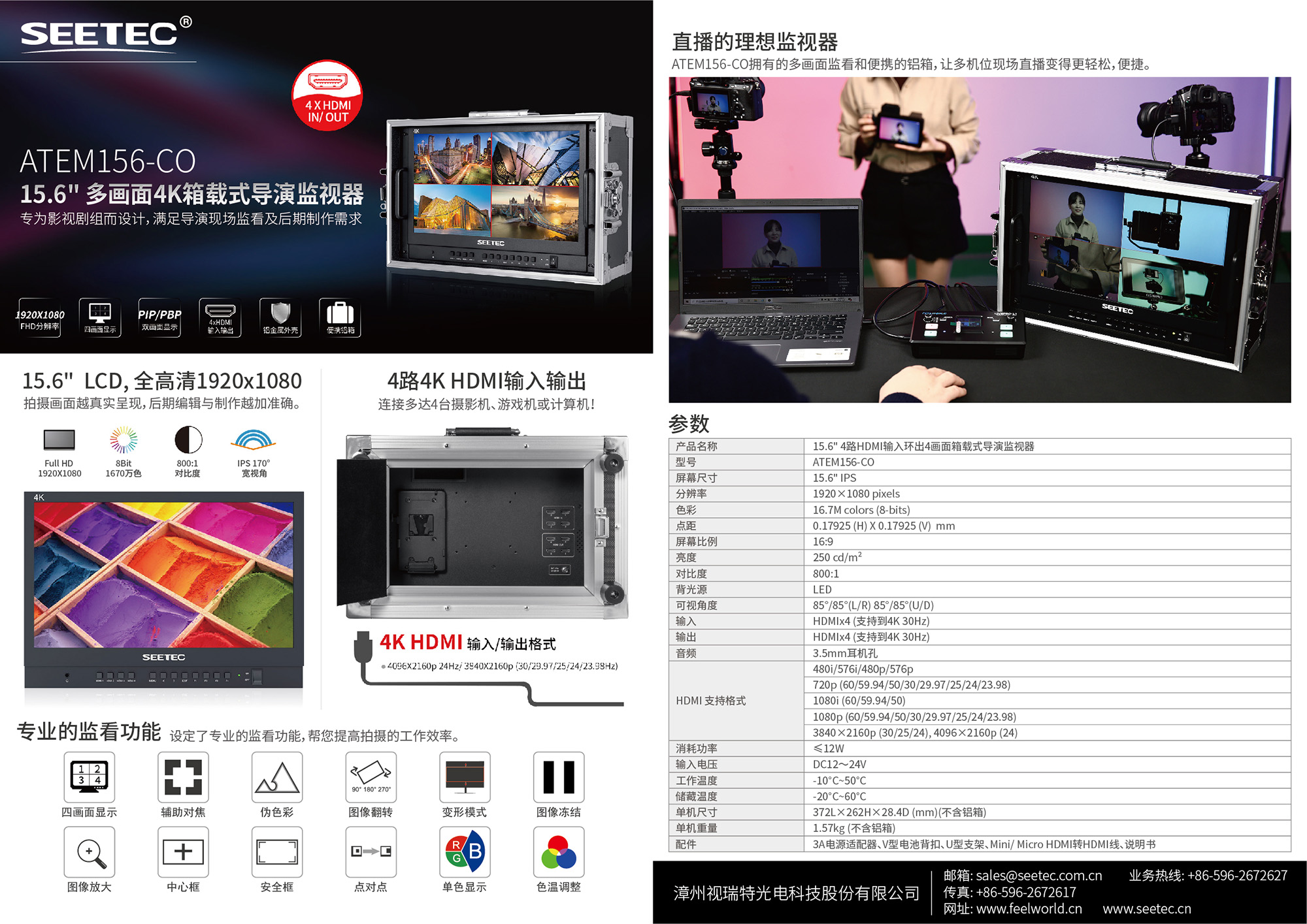 SEETEC ATEM156-CO 15.6寸4K HDMI 多畫面廣播級便攜箱載式導演監視器