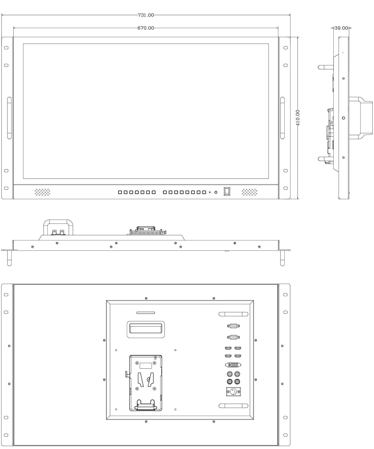 The monitor is equipped with 3G-SDI, HDMI, DVI, VGA, Audio L/R, Tally interfaces, meet all HD, SD, analogue video signal input and display demand.