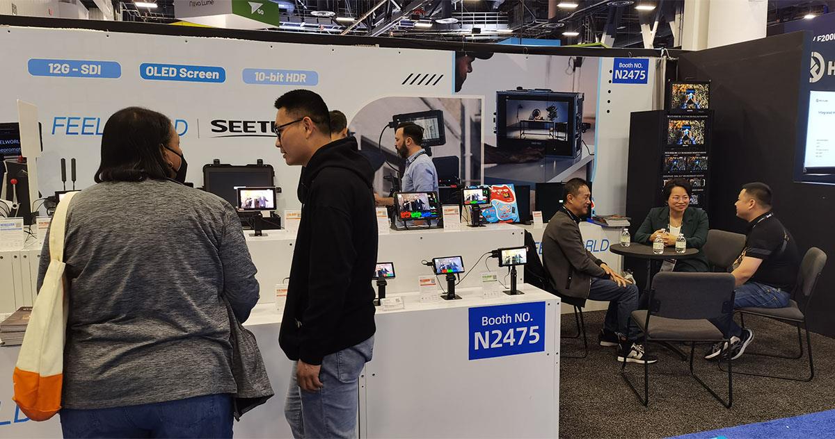 At the NAB2025 exhibition held from April 6-9,FEELWORLD/SEETEC showcased latest items such as the 12G-SDI on-camera monitor H5/S7/S10, built-in battery monitor P6XL, triple vertical short drama monitor PS101, along with the highly anticipated new PS6 OLED vertical monitor and S24 8K 12G SDI cinematic monitor,capturing the favor of numerous attendees.