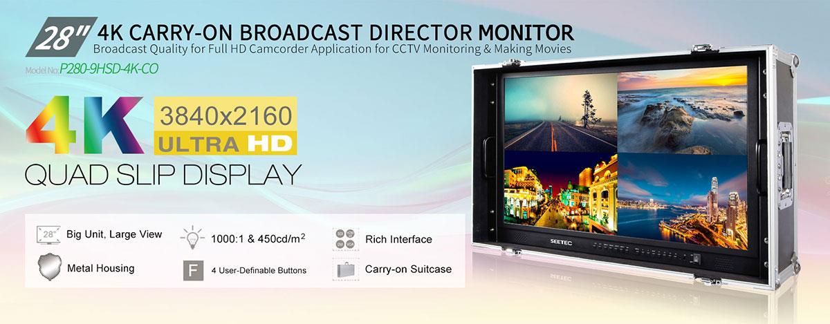 23.8" /28" 4K Carry-on Broadcast Director Monitor with Quad Slip Display for CCTV Monitoring & Making Movies