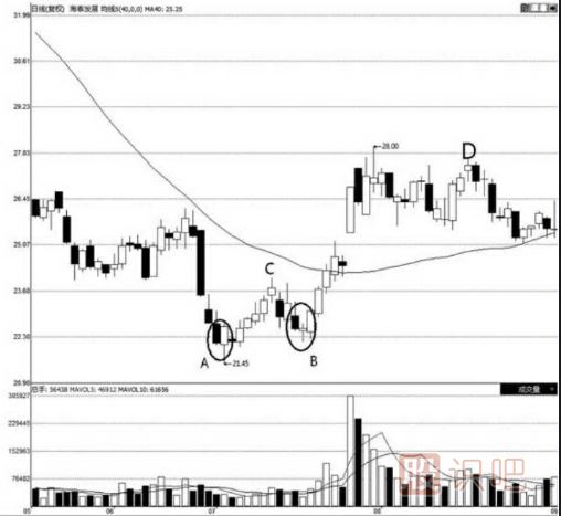 在操作上,第一種情況出現后要及時加倉,一旦反轉失敗跌破第一根K線低點即行止損;第二種情況出現后如果已建底倉,應該在股價跌破第一根K線最高點時及時止損。